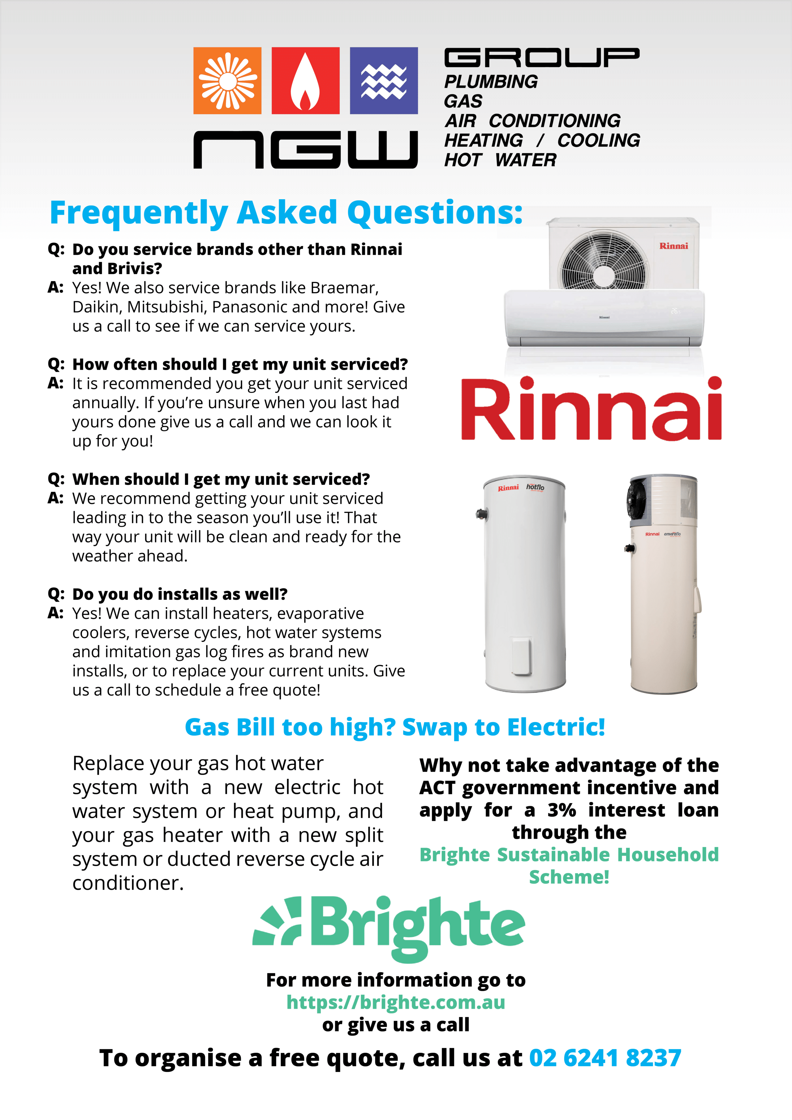 Recently had these guys install our ducted heater and service our hot water unit.The advice, install quality and service is second to none. Honestly couldn’t recommend NGW highly enough.